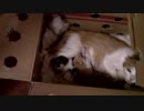 実家の車庫で保護した子猫 シロとトラの食後の恥ずかしい姿